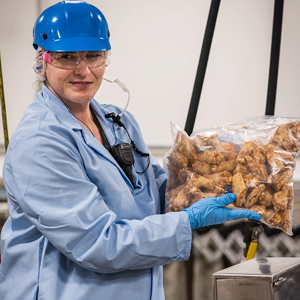 Pre-breaded chicken is made in large batches in a controlled environment, so the shape, size, taste, and texture are much more consistent. Calibrated equipment and methods at advanced production facilities like ours send chicken through specific combinations of marination, predusters, breaders, and cookers, all while experienced line operators monitor the process to ensure breading consistency and quality.