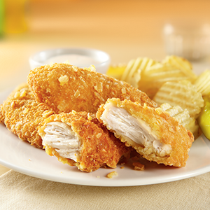 On our end, we offer several different sensory experiences in our chicken products. Our crispy chicken filets deliver an audible crunchy, crumbly experience. Biting into a panko tender gives a burst of tiny, toasted breadcrumb pops. And tossing back a few popcorn chicken pieces is all the fun of movie theater popcorn but with even more texture—crunchy on the outside with tender chicken on the inside.